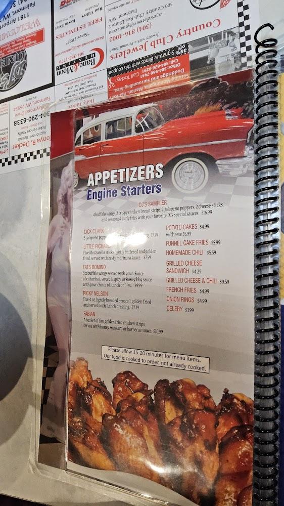 Step back in time at DJ's 50's & 60's Diner, located at 1181 Airport Rd, Fairmont, WV. This charming eatery brings you the nostalgia of classic diners with a menu featuring delicious breakfast, lunch, and dinner options from simple, traditional cuisine to delectable desserts. Enjoy a relaxed atmosphere perfect for solo diners, families, and groups alike. With accessible seating, takeaway, and delivery services, we cater to every need. Whether you're grabbing a quick bite or indulging in local specialties, experience excellent coffee and friendly service that keeps you coming back. Join us for a taste of the past!